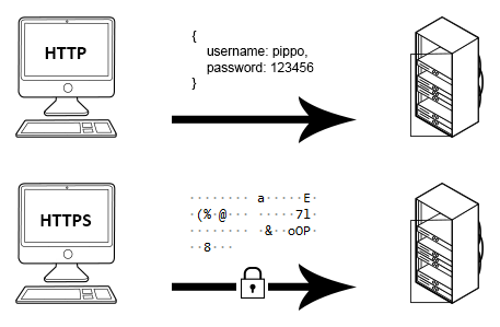Cosa cambia? Mentre nel primo caso i dati vengono inviati da e al server in modo chiaro, nel secondo caso vengono inviati e ricevuti in modo crittografato.