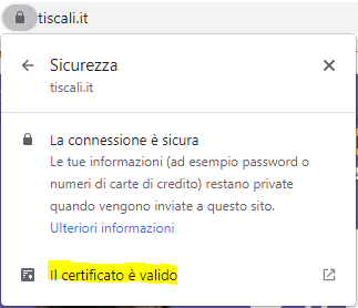 Tutti i browser ci danno la possibilità di aprirlo. Con Chrome dopo aver cliccato su “La connessione è sicura” apparirà un altro popup: