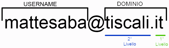Formalmente si pronuncia “mattesaba at (presso, in inglese) tiscali.it“, dove “mattesaba” è il nome utente o l’username e “tiscali.it” il dominio dove risiede la casella di posta.