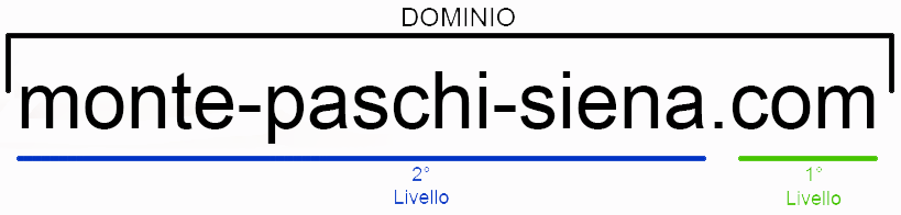 Volgarmente viene chiamato dominio ciò che è appartiene al primo (chiamato anche “estensione“) e al secondo livello che identifica univocamente un sito web.
